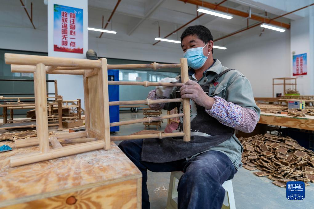 10月31日,昭通市大關縣一家筇竹傢具企業員工在打磨傢具。