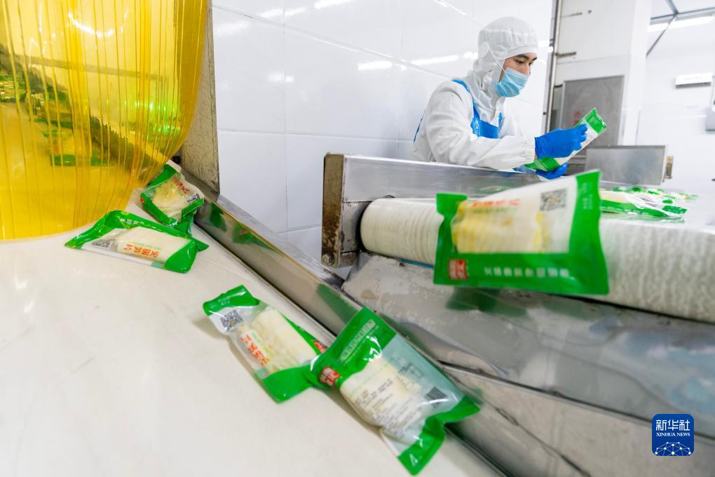 10月31日,昭通市大關縣一家竹筍生産企業員工在流水線上查看竹筍包裝情況。