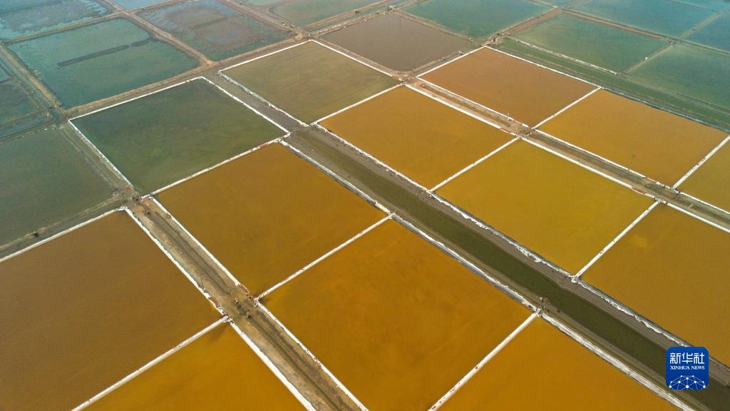 深秋時節,遼寧省營口市老邊區的鹽田色彩斑斕,宛如大地的調色板,美不勝收。