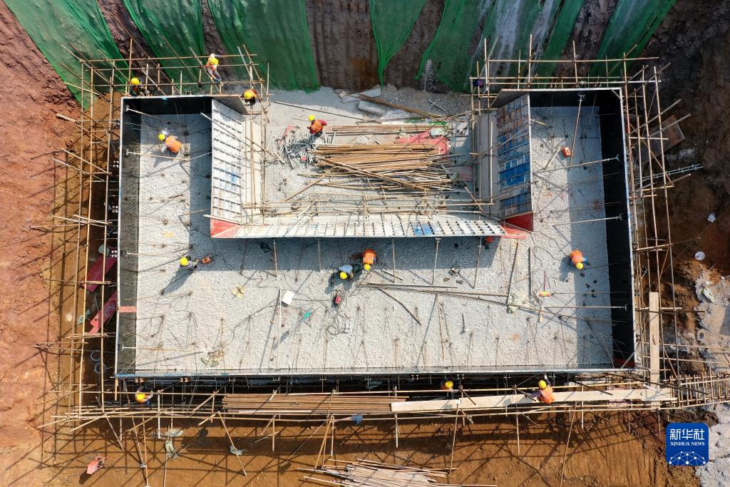 11月1日,正在進行橋墩施工的老猴衝大橋(無人機照片)。