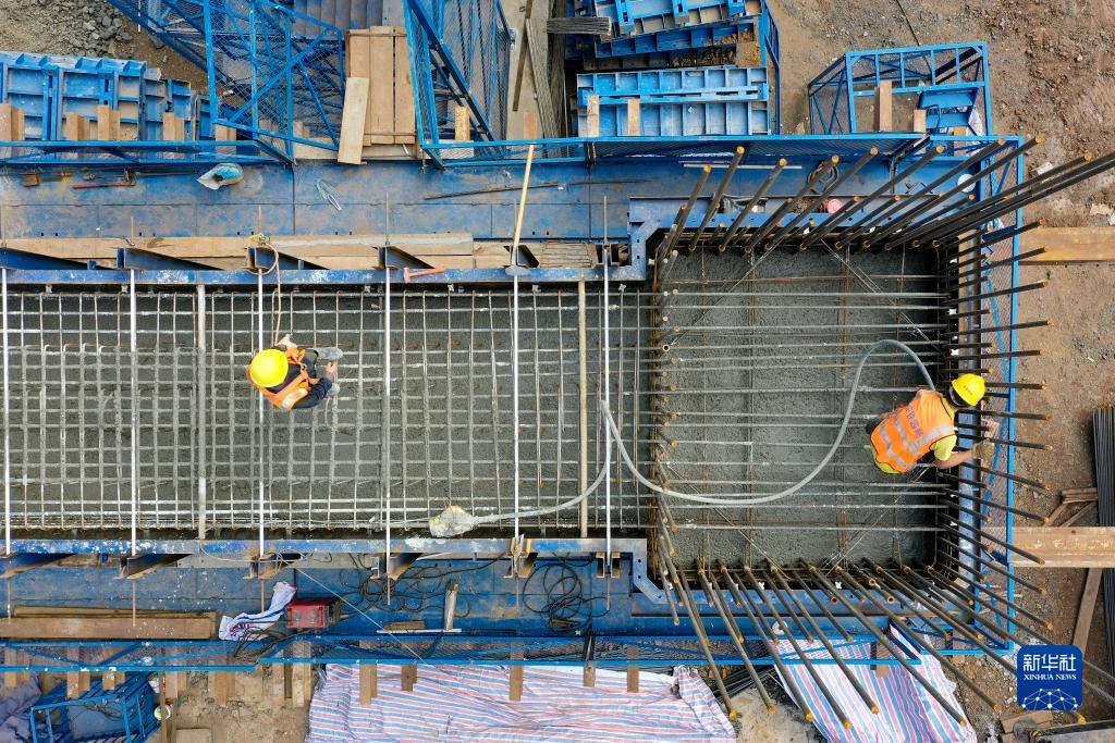 11月1日,正在進行橋墩施工的老猴衝大橋(無人機照片)。