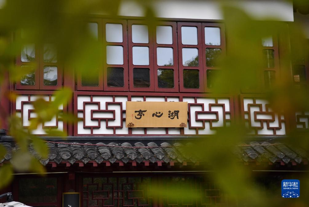 這是9月28日拍攝的德國漢堡豫園湖心亭。