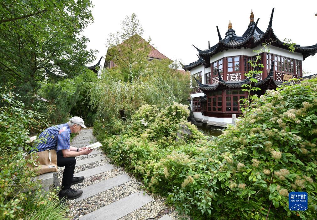 9月29日,一名男子在德國漢堡豫園看書。