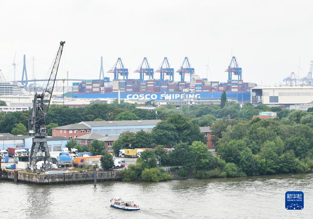 8月12日,一艘中遠海運集團貨輪停靠在德國漢堡港。