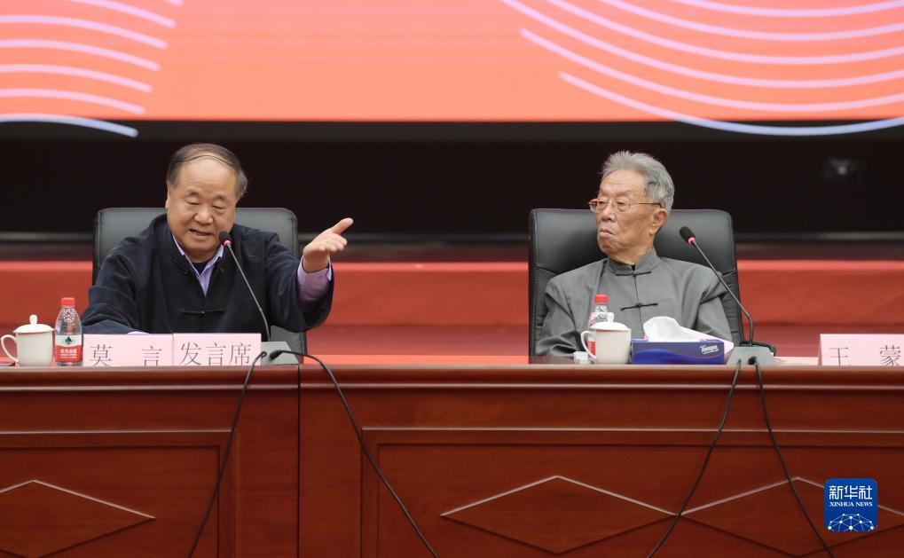 11月1日,作家莫言(左)在研討會上發言。