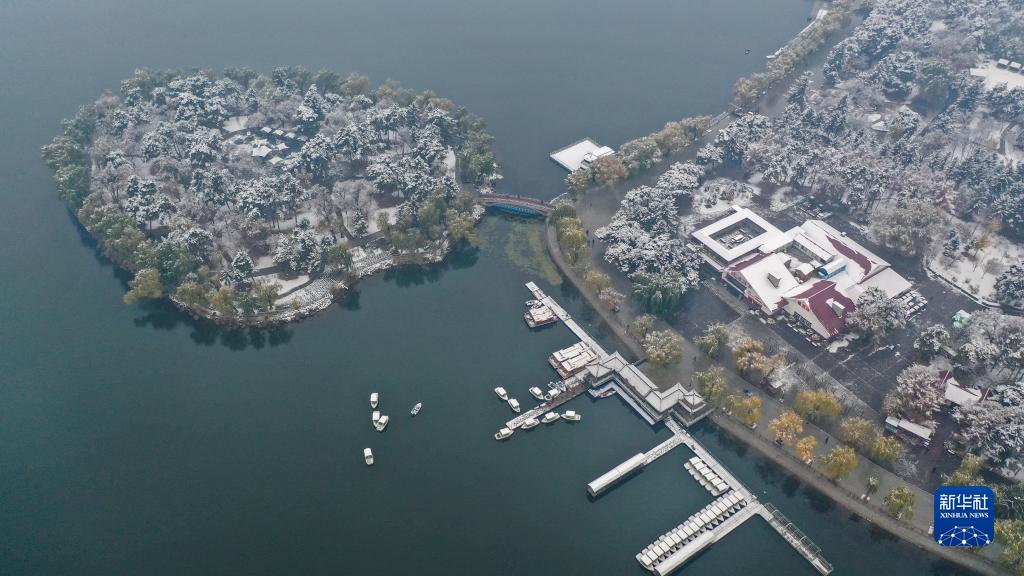11月1日拍攝的長春市南湖公園雪景(無人機照片)。