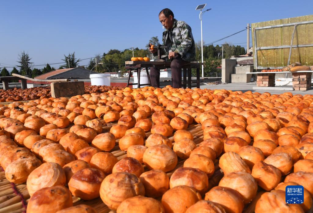10月31日,河南省博愛縣寨豁鄉白坡村農民在晾曬柿子。