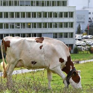 這是10月31日在瑞士沃韋拍攝的雀巢總部大樓。