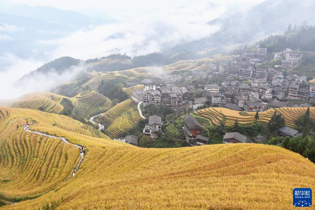 10月30日在廣西桂林市龍勝各族自治縣龍脊鎮平安村拍攝的秋景。
