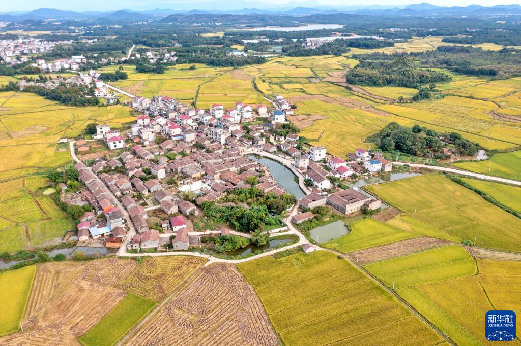 10月30日在江西省撫州市金溪縣陳坊積鄉城湖村拍攝的秋景(無人機照片)。