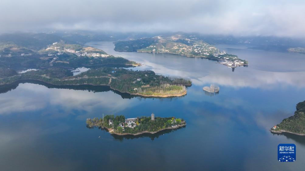 11月1日拍攝的陜西安康瀛湖景區秋景(無人機照片)。
