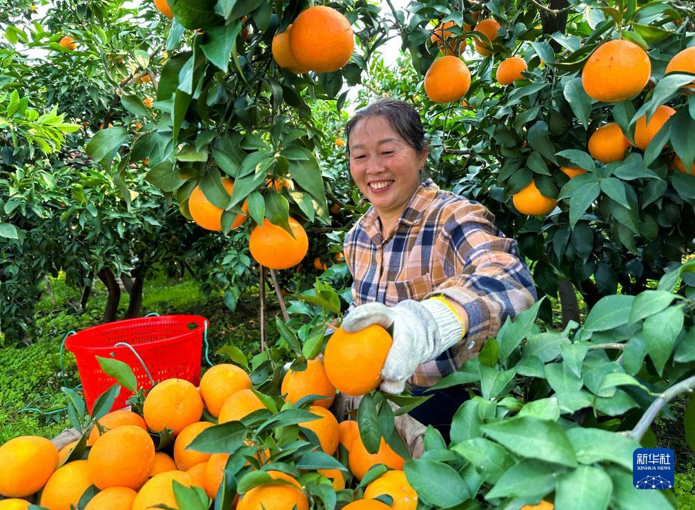 11月1日,四川省眉山市仁壽縣富加鎮大山村村民在採摘柑橘。