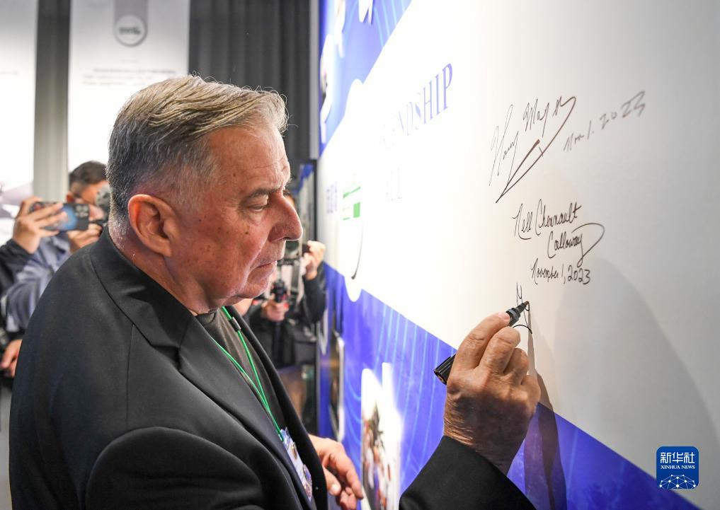 11月1日,美中航空遺産基金會主席格林在重慶史迪威博物館友誼墻上簽名。