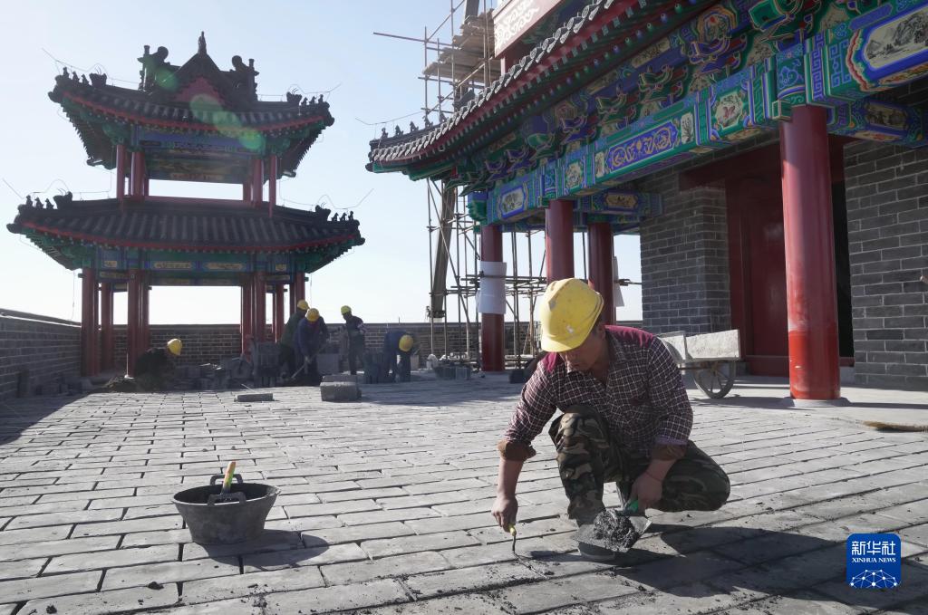 11月1日,工人在河北省張家口市萬全右衛城長城國家文化公園文旅融合區項目建設工地施工。