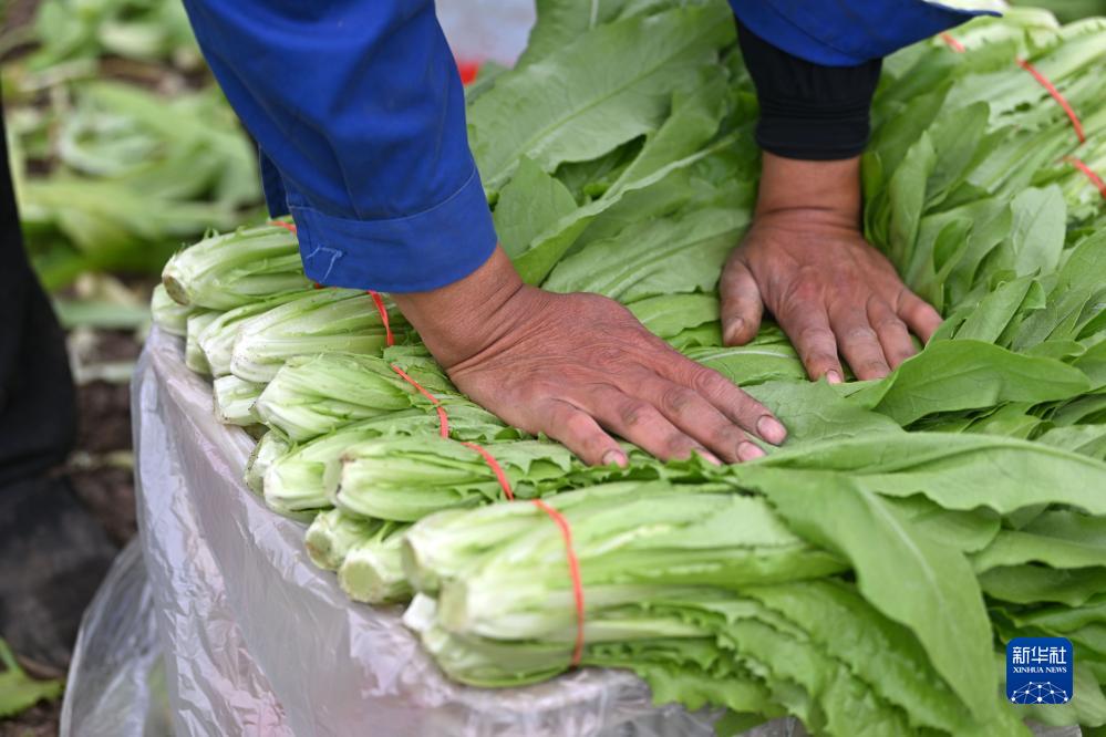 11月2日,在天津市西青區辛口鎮當城村,農戶把收穫的油麥菜打包。