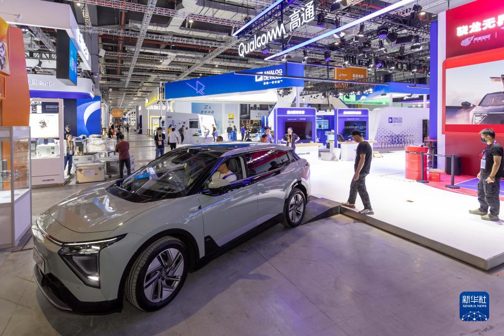 11月2日,一輛搭載高通芯片的智能電動汽車準備駛向高通展位。