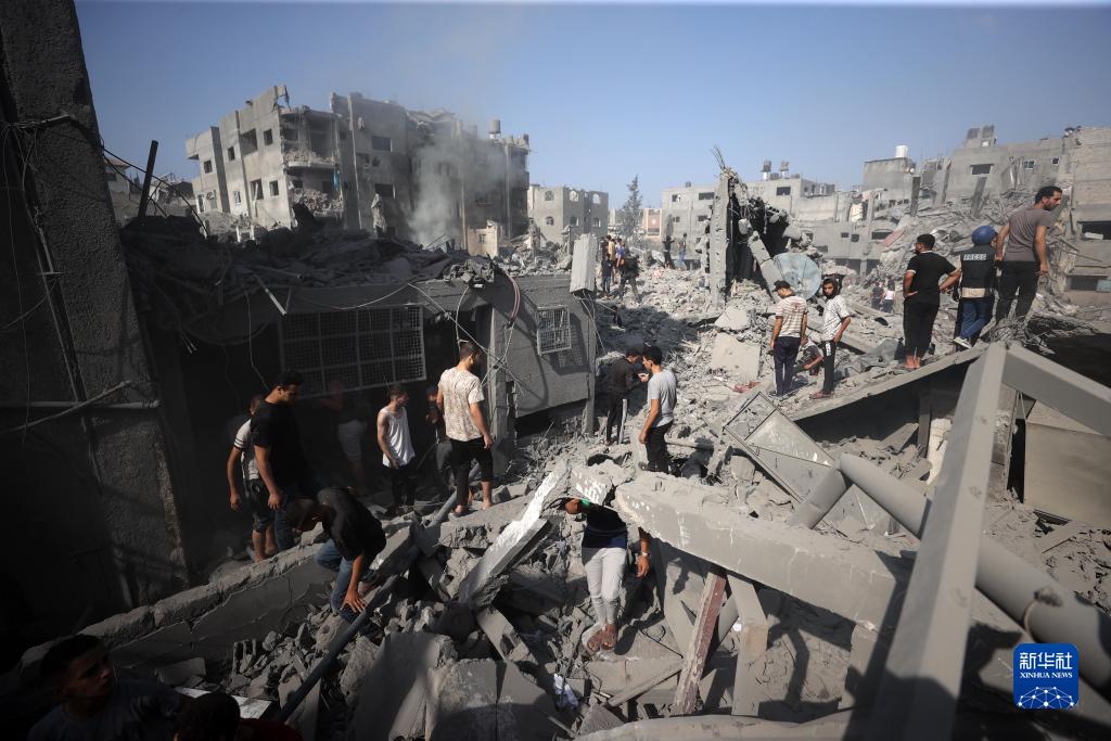 11月2日,在加沙地帶中部的布賴傑難民營,人們在以色列空襲後展開營救工作。新華社發(亞西爾·庫迪 攝)