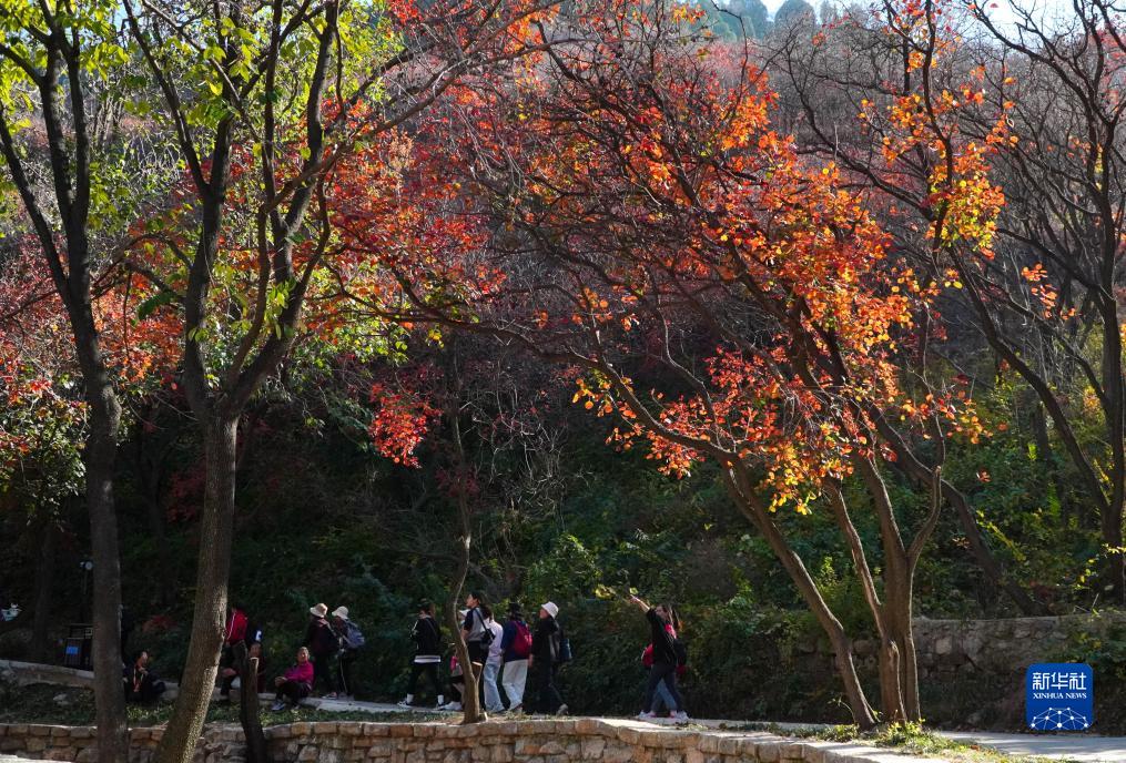 金秋時節,山東省濰坊市臨朐縣石門坊景區內紅葉漫山,層林盡染,吸引游客前來觀賞游玩。