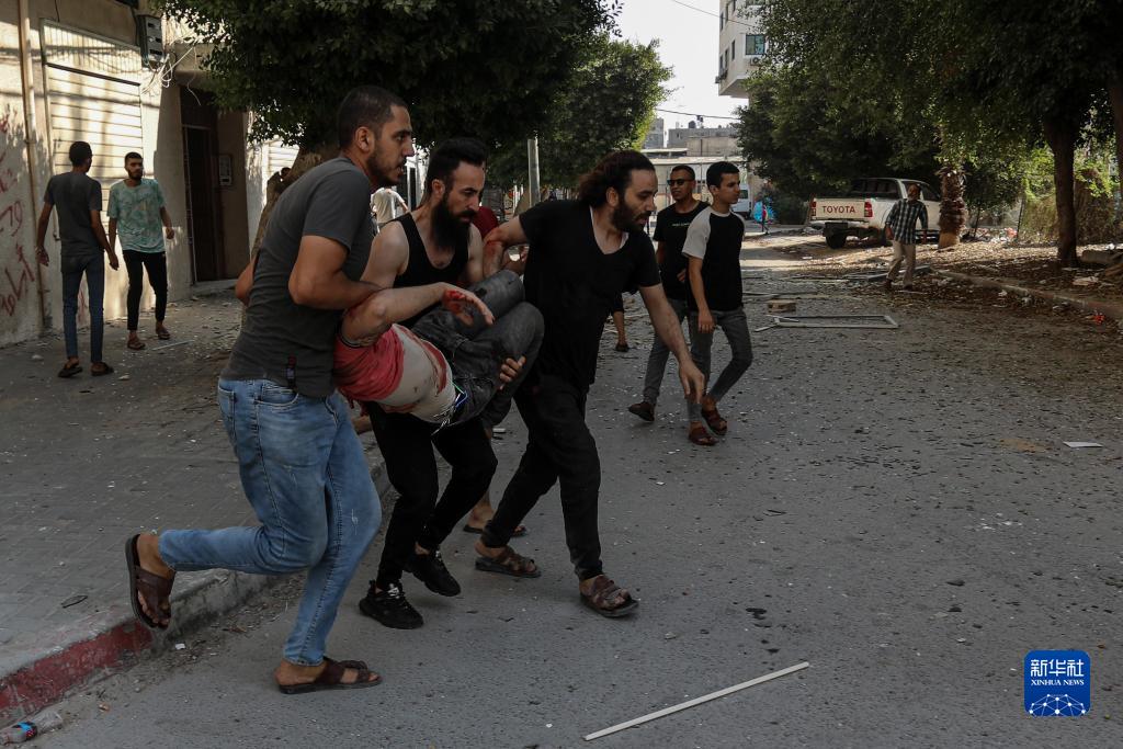 11月2日,人們在加沙城遭以軍空襲後轉移傷者。