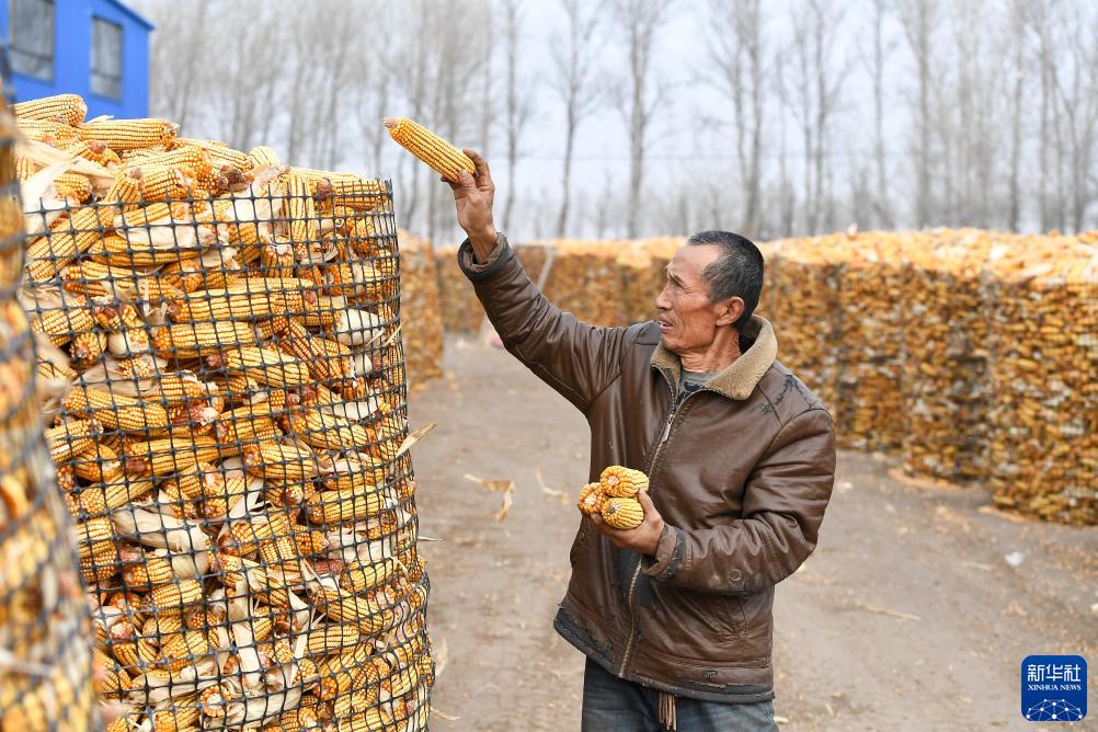 11月2日,在吉林省四平市梨樹縣喇嘛甸鎮,農民將玉米裝入科學儲糧倉。