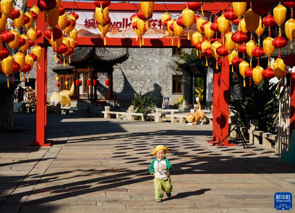 小朋友在棲霞古鎮玩耍(11月2日攝)。