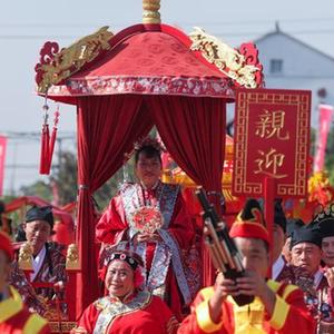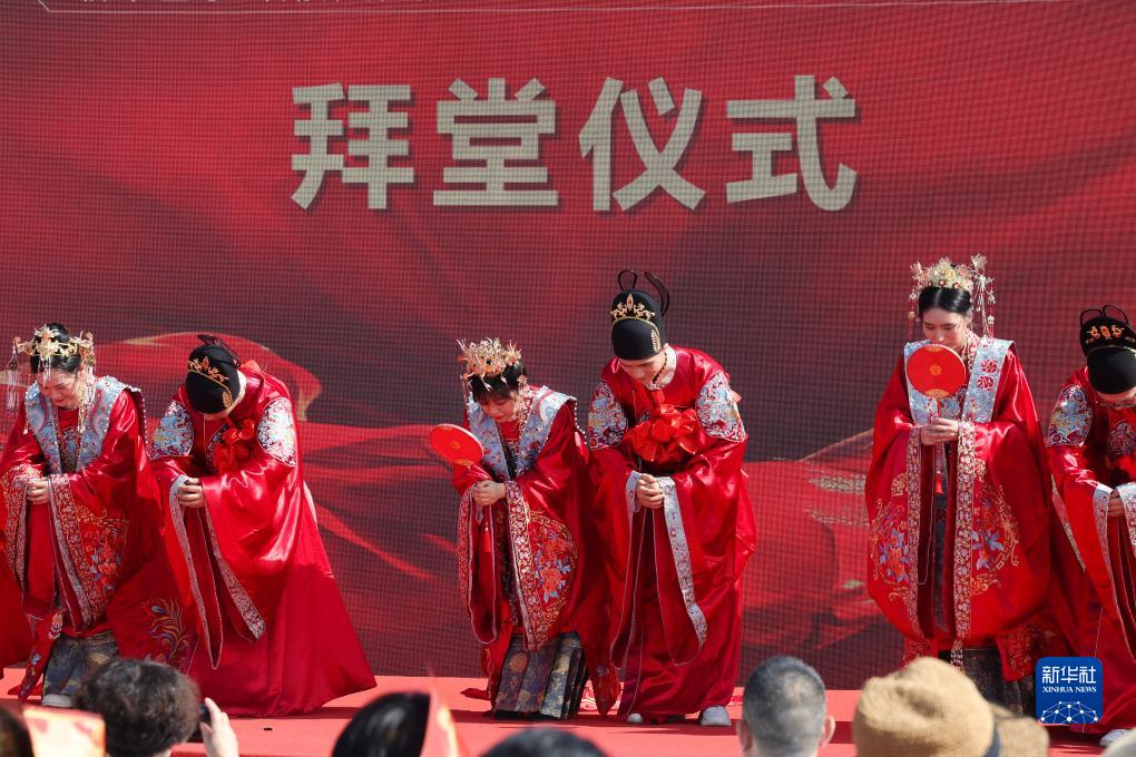 坐上大花轎、走過合歡橋、跨過紅火缸、同乘幸福船……11月3日,一場“良緣水鄉締 佳偶自天成”水鄉集體婚禮在浙江省杭州市臨平區塘棲鎮丁河村新建成的“丁山湖魚鷹愛情故事婚禮基地”舉行。八對新人在村民和游客的見證下喜結良緣,並發出《婚俗改革倡議書》,向廣大適婚青年傳播新時代的婚戀觀,倡導健康文明的嫁娶新風尚。該婚禮基地依託水鄉風貌,已成為當地特色鄉村文旅品牌。