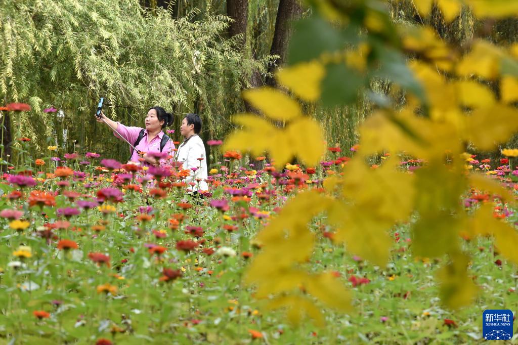 深秋時節,北京圓明園內層林盡染,園內種植的銀杏、白蠟樹、楓樹、槭樹、黃櫨等彩葉觀賞樹種,色彩斑斕,形成多個彩葉觀賞區,吸引眾多游客駐足觀賞、留影。