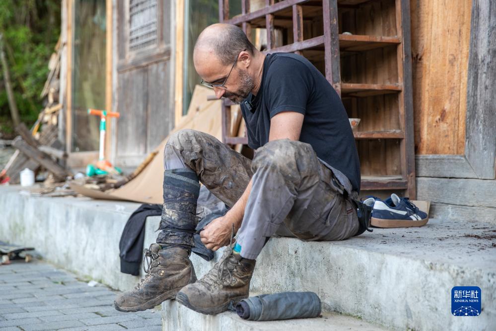 9月15日,在重慶市城口縣北屏鄉松柏村,文森在割漆前穿戴綁腿。