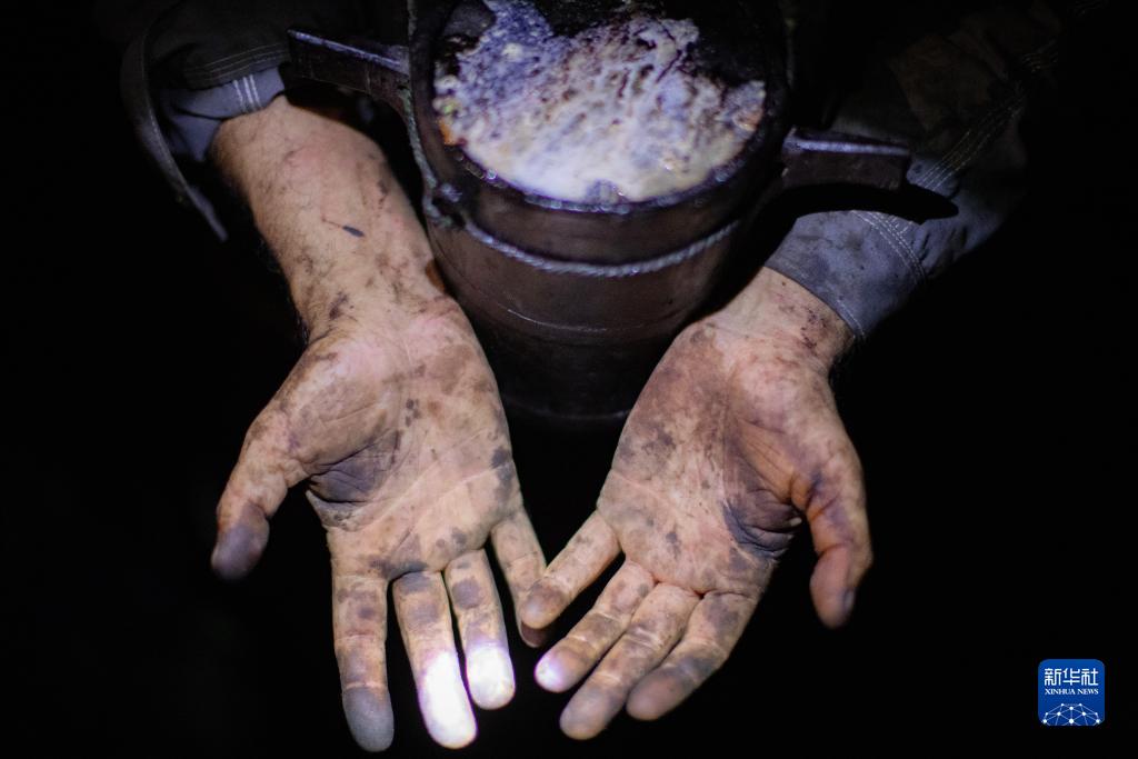 9月15日,在重慶市城口縣北屏鄉松柏村的深山中,文森展示他割漆後的雙手。