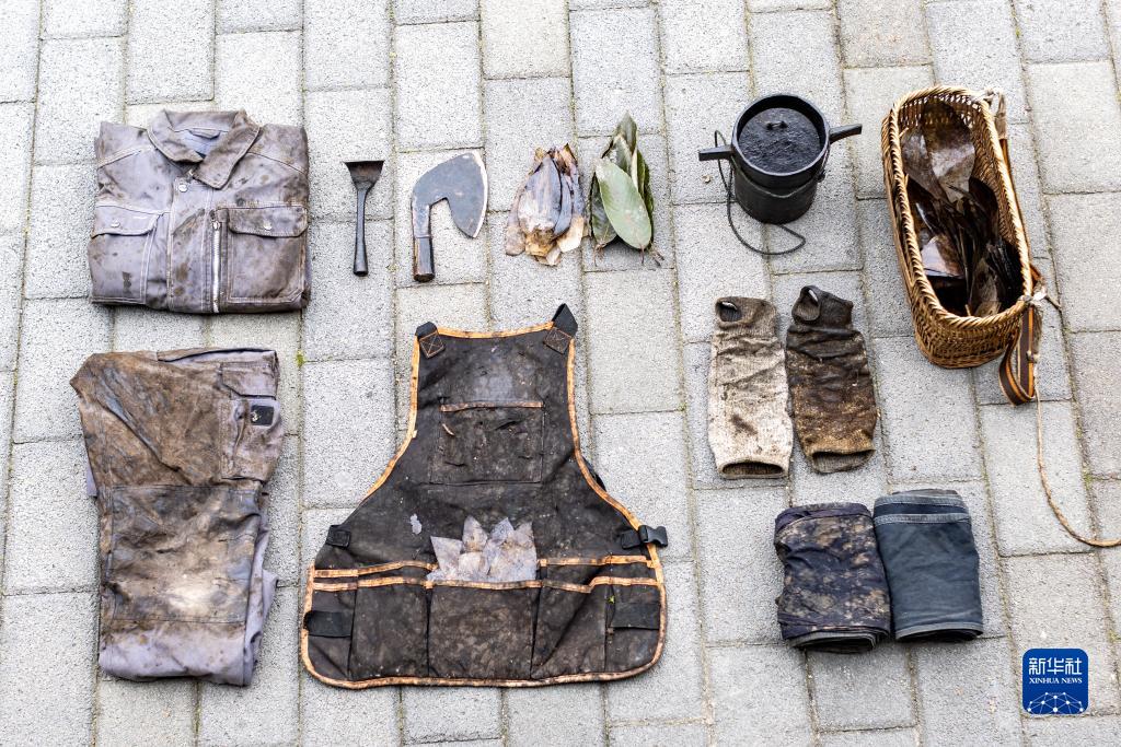 這是10月24日在重慶市城口縣北屏鄉松柏村拍攝的文森割漆用的裝備。