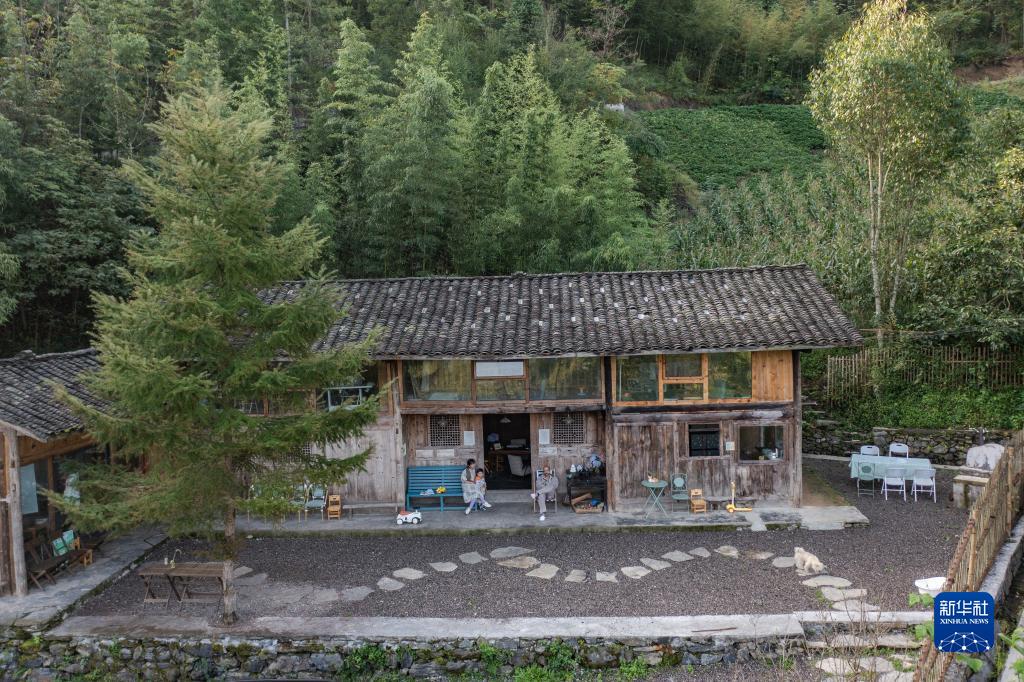 9月16日,在重慶市城口縣北屏鄉松柏村,文森一家三口在家中享受周末時光(無人機照片)。