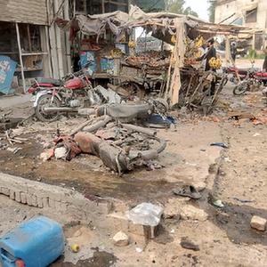 11月3日,在巴基斯坦開伯爾-普什圖省德拉伊斯梅爾汗地區,安全人員和救援人員到達爆炸現場。
