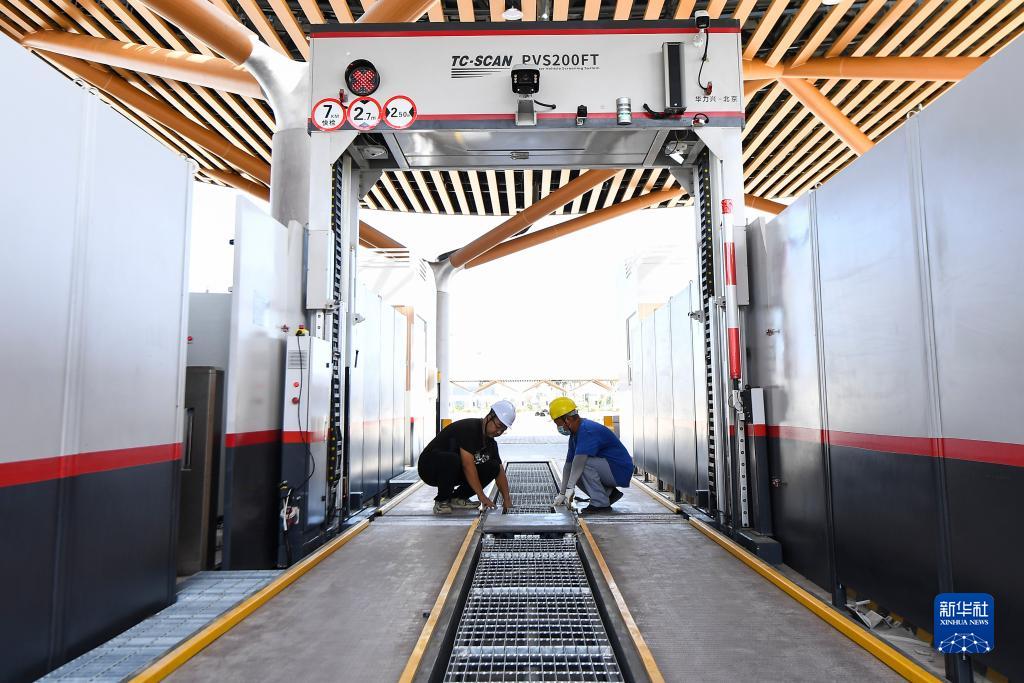 11月3日,工人在海口新海港和南港“二線口岸”(客運)客運查驗設施、設備建設項目上進行調試安裝。