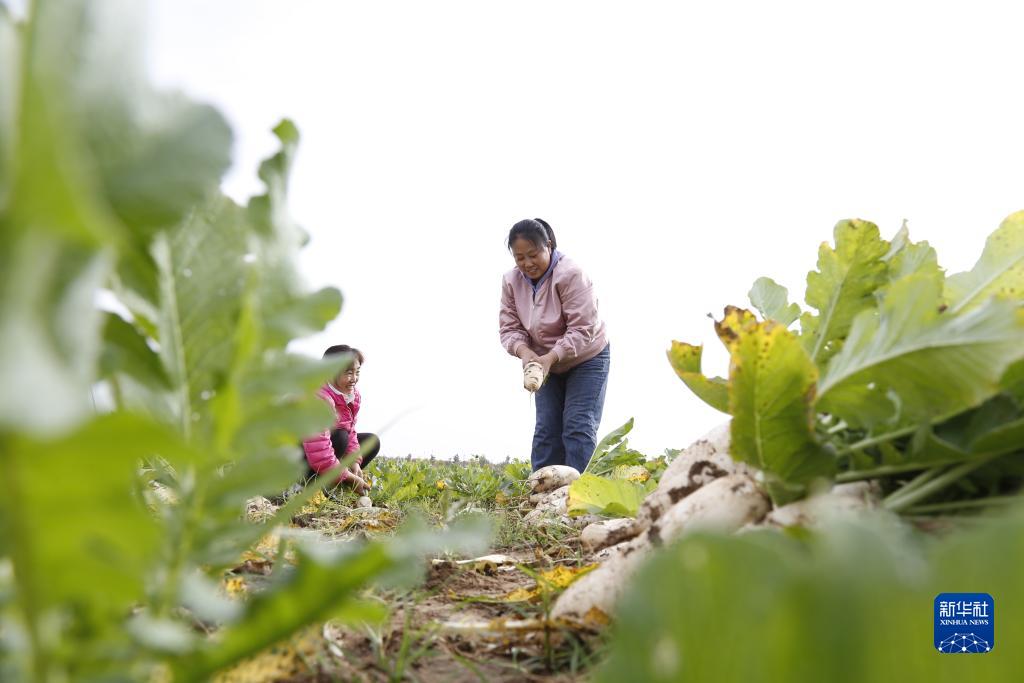 11月3日,河北省邢&市襄都區泉東街道辦事處白塔社區農民在田間采收蘿蔔。