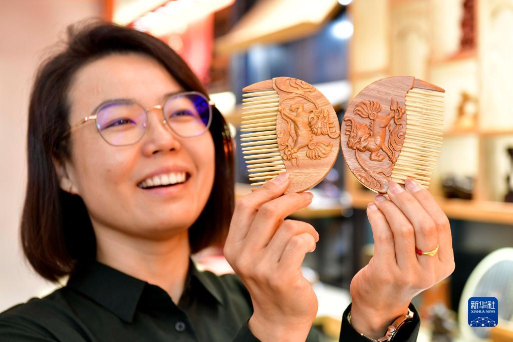近年來,山東省濟寧市嘉祥縣大張樓鎮依託省級非遺嘉祥木雕技藝資源,在木雕龍頭企業帶動下,大力發展木梳産業。嘉祥木梳將傳統中國畫的元素融入到設計中,讓用戶感受傳統文化魅力。目前,嘉祥縣大張樓鎮木梳産業年産值過億元,已成為當地鄉村振興的特色主導産業之一。