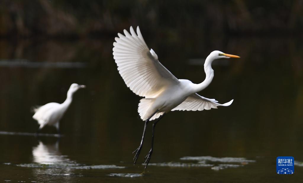 金秋時節,眾多鷺鳥在山東省滕州市上善公園水域覓食、嬉戲,構成一道靚麗風景。