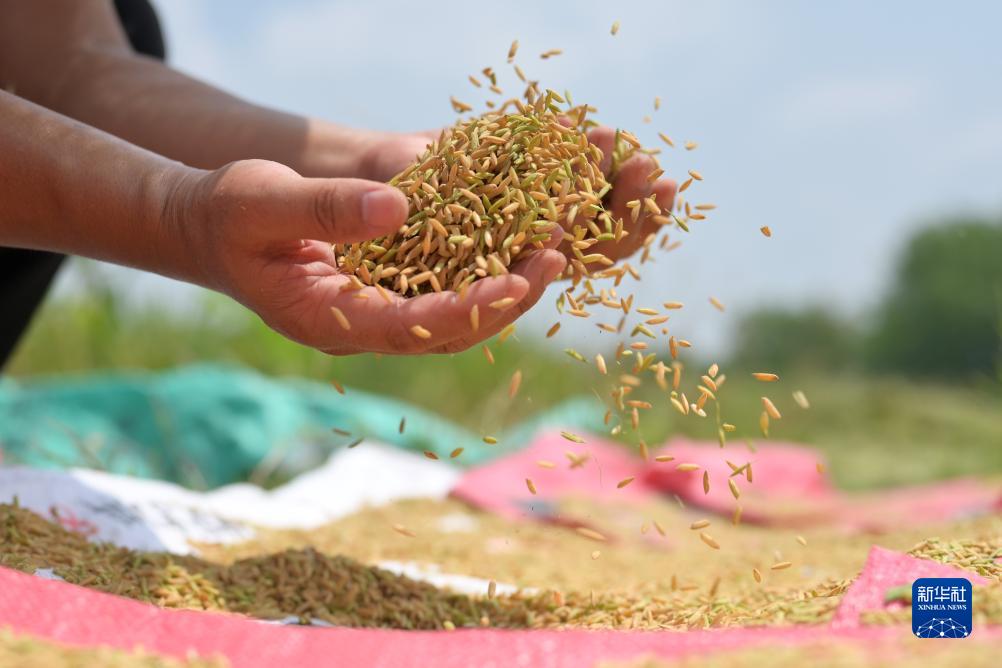 這是8月10日在婁底市雙峰縣印塘鄉鹽井灣村“稻再油”示範片拍攝的頭季稻穀。