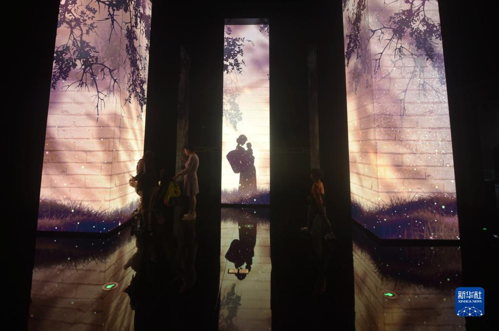 10月28日,觀眾在浙江文學館數字多媒體展廳觀看通過數字科技展示的艾青創作的現代詩歌《大堰河——我的保姆》。
