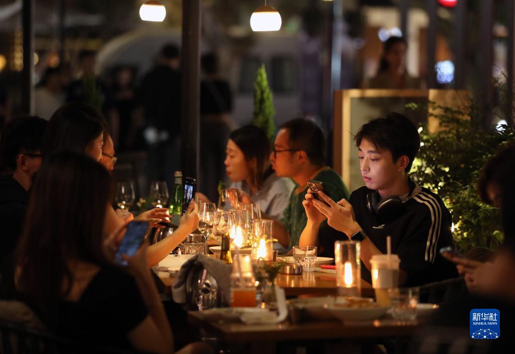 11月3日,人們在上海新天地的餐廳等待用餐。