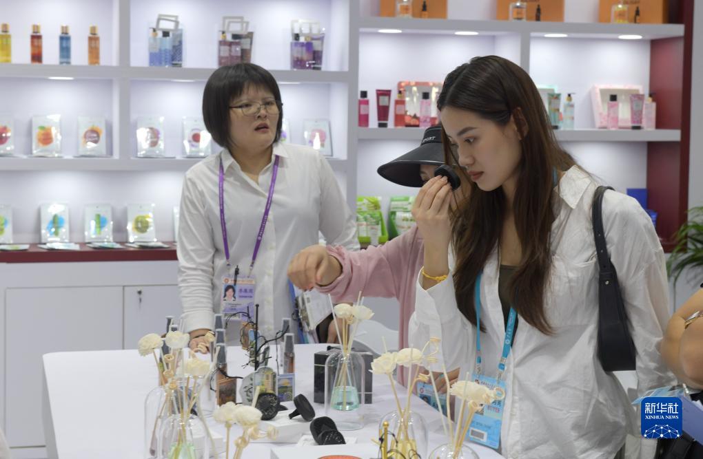 11月4日,客商在廣交會上選購香薰産品。