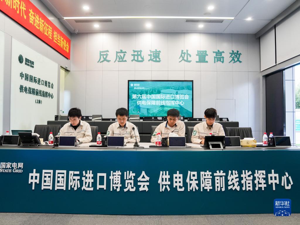 11月4日,國網上海青浦供電公司工作人員在進博會供電保障前線指揮中心內工作。