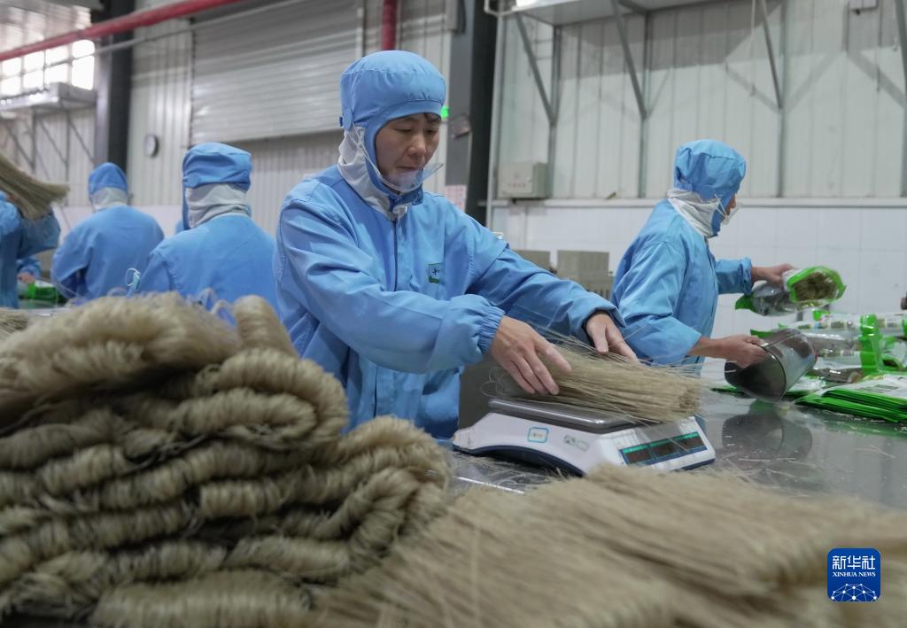 11月4日,工人在河北省盧龍縣一家甘薯深加工企業的粉條生産車間工作。