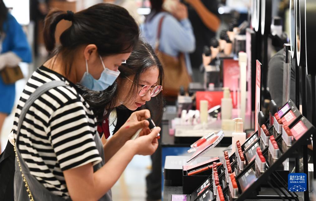 游客在中免集團海口日月廣場免稅店選購免稅商品(4月30日攝)。