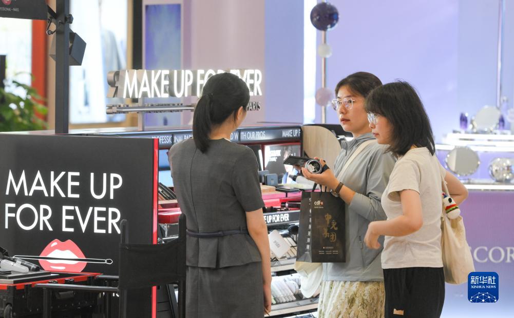 游客在中免集團海口日月廣場免稅店選購商品(7月12日攝)。