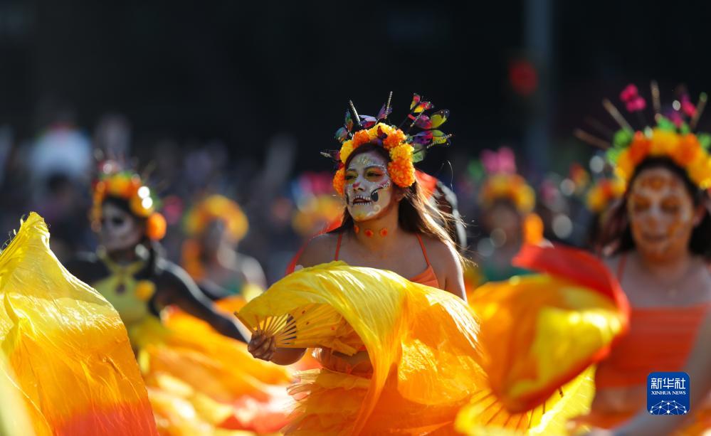 11月4日,在墨西哥首都墨西哥城,演員參加亡靈節游行。