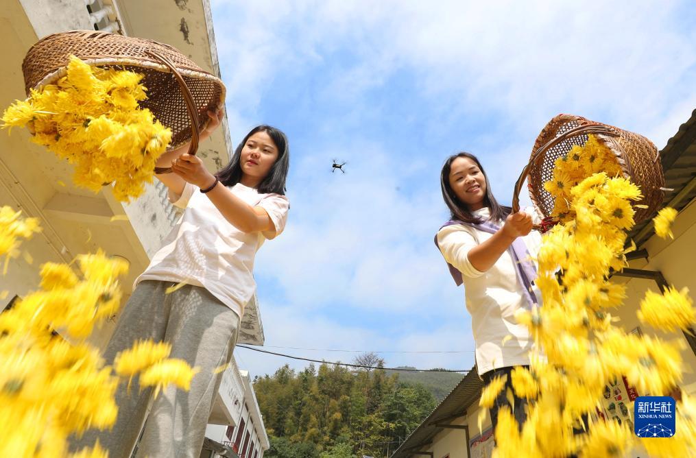 近日,湖南省衡陽市南嶽區壽岳鄉岳林村皇菊種植基地種植的高山皇菊進入收穫期,當地村民搶抓晴好天氣採摘、加工。近年來,岳林村依託當地高山林地,大力發展觀賞性強、經濟價值高的高山皇菊種植,推動當地農旅融合發展,帶動農民增收。