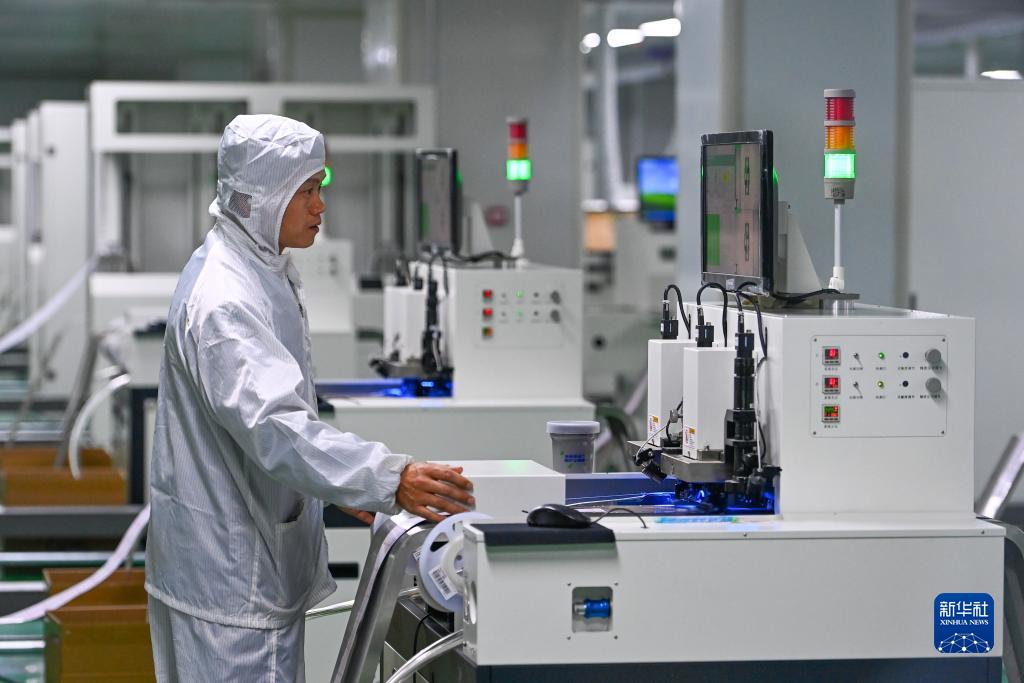 工作人員在新疆喀什綜合保稅區內的一家電子科技公司生産車間作業(11月4日攝)。