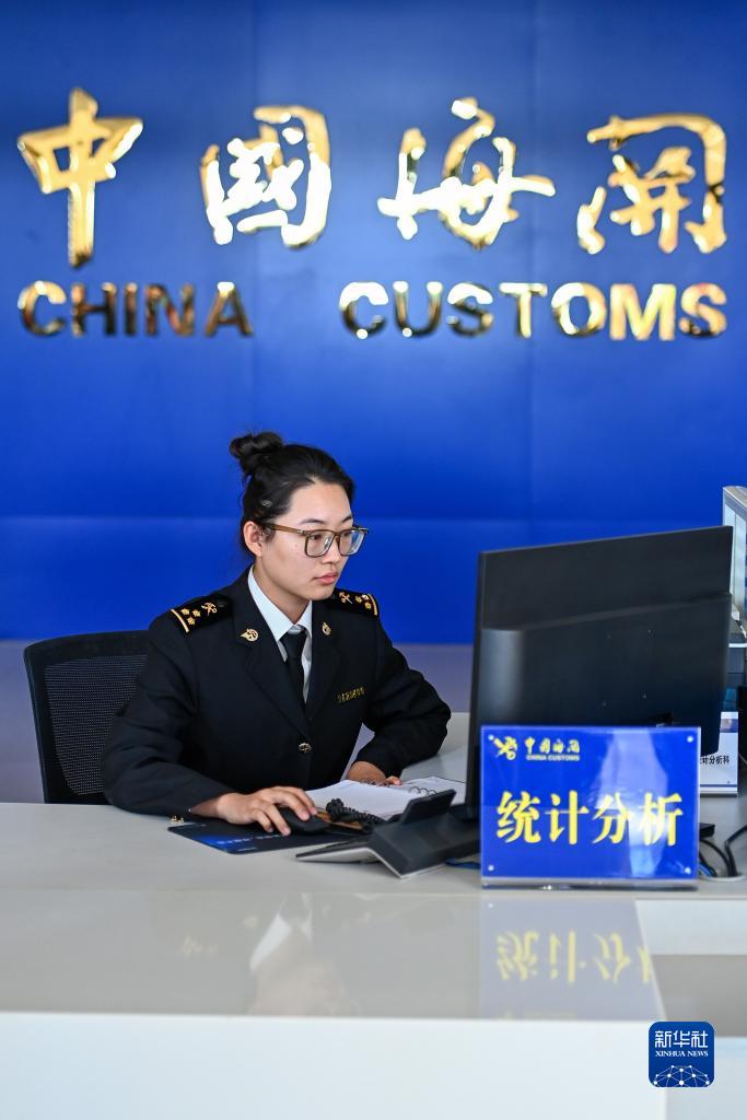 喀什海關關員在新疆喀什海關一站式業務大廳辦理業務(11月4日攝)。