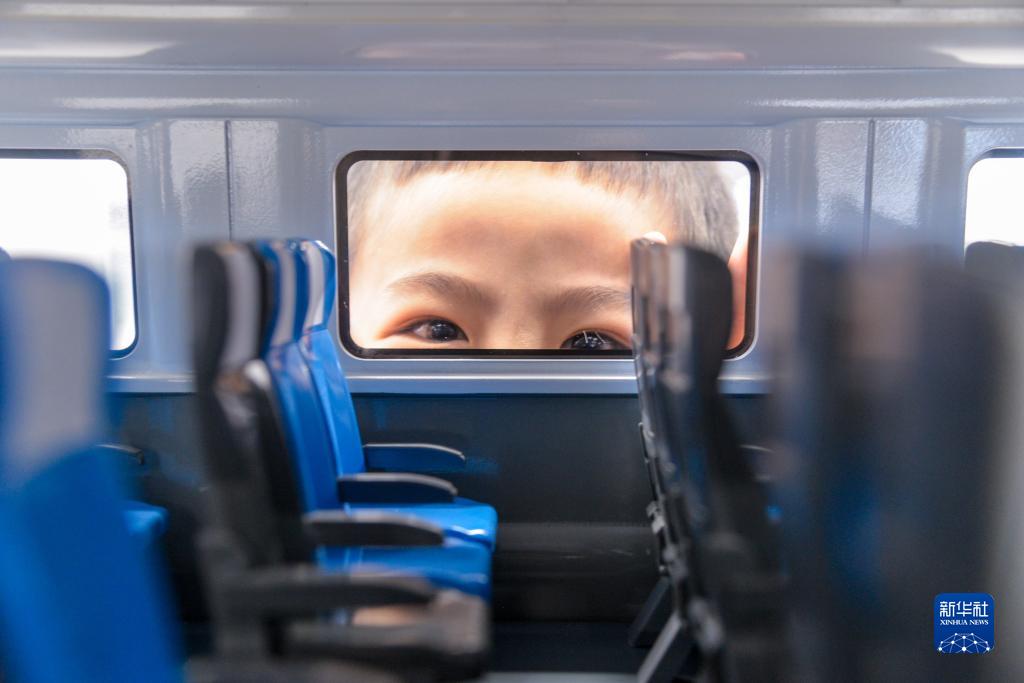 11月5日,在印度尼西亞雅加達哈利姆站候車大廳,一名小朋友在查看一個雅萬高鐵高速動車組模型的內部構造。