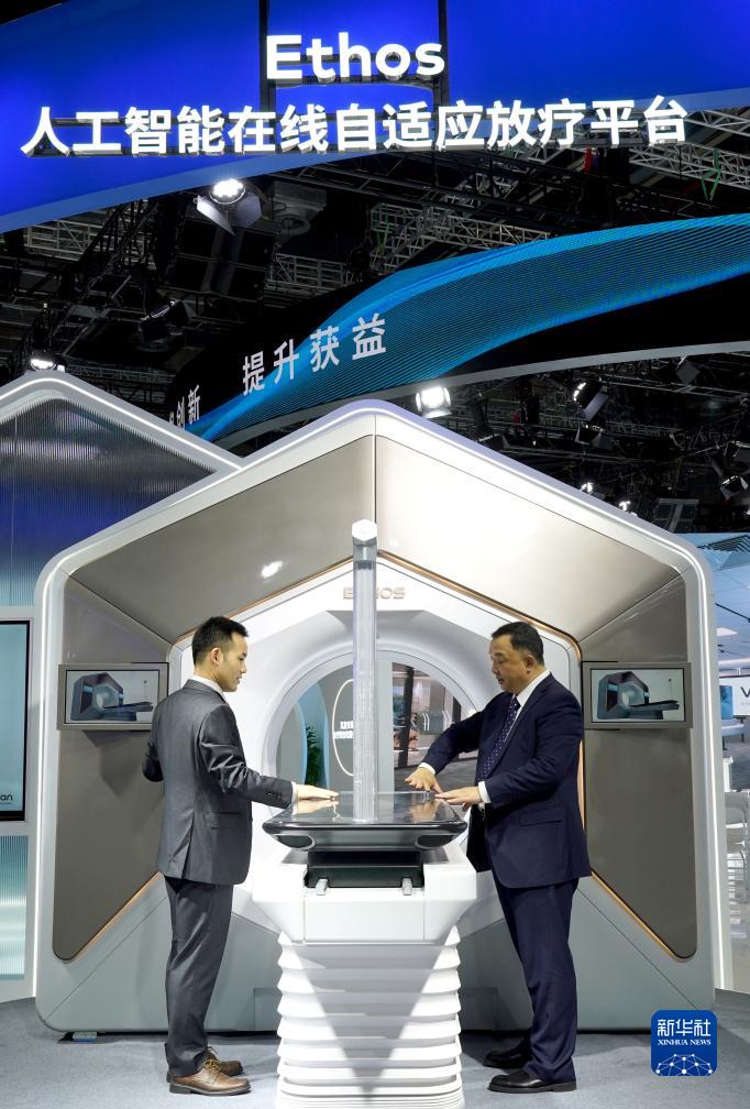 11月5日,在第六屆進博會醫療器械及醫藥保健展區,瓦裏安展&展出全球同步首發的第二代Ethos人工智能在線自適應放療平台。